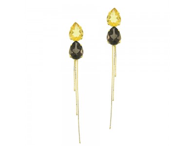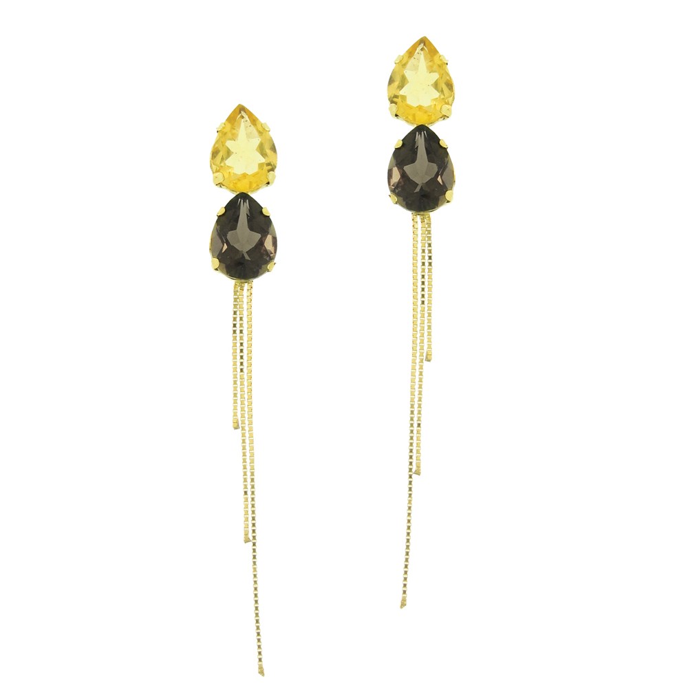 - Brinco em ouro amarelo 18k, com chatão em gota e 3 venezianas
