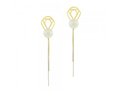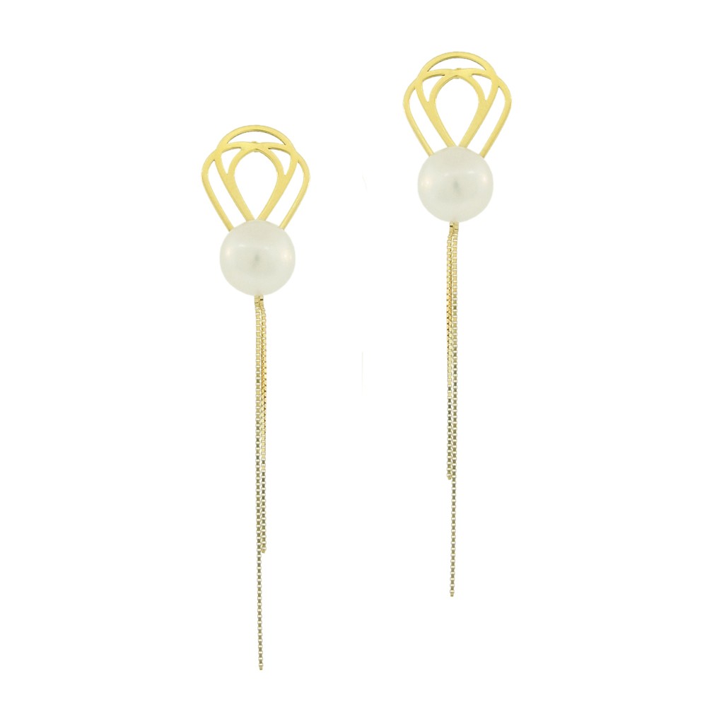- Brinco em ouro amarelo 18k, com mosaico e venezianas em ouro e pérola botão