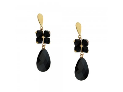 - Brinco em ouro amarelo 18k, com chapa em ouro, pedra de cristal e gota de cristal