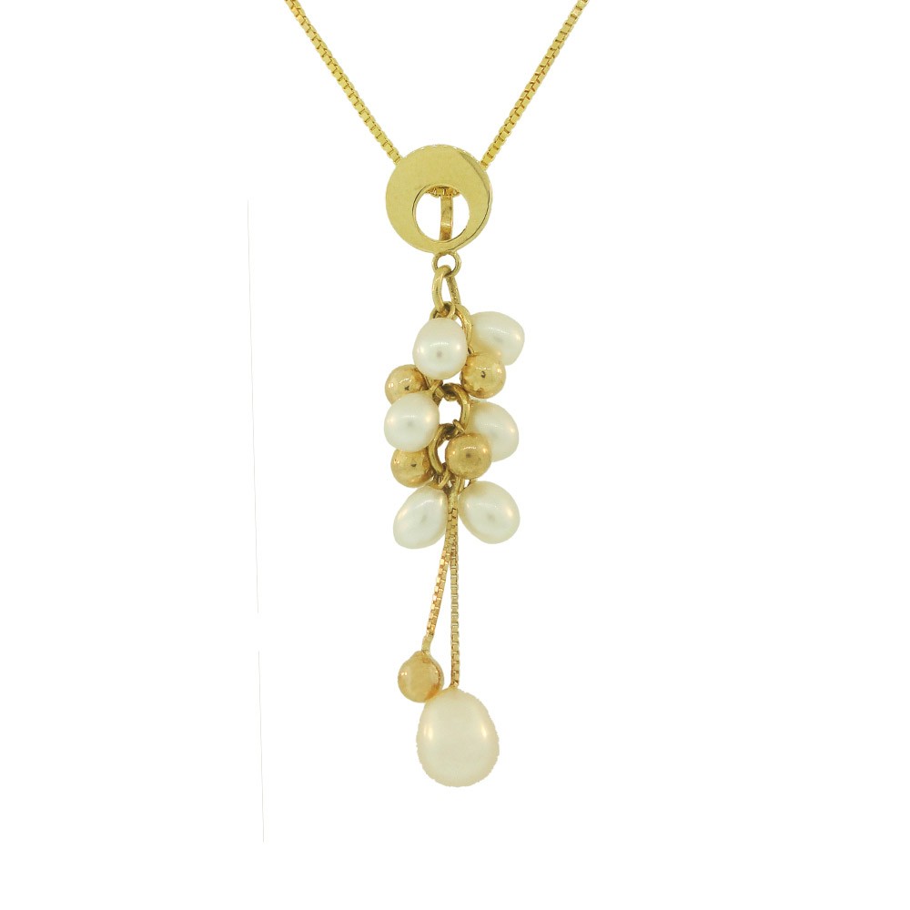 - Pingente em ouro amarelo 18k, com chapa redonda vazada, detalhes em ouro e perola pequena
