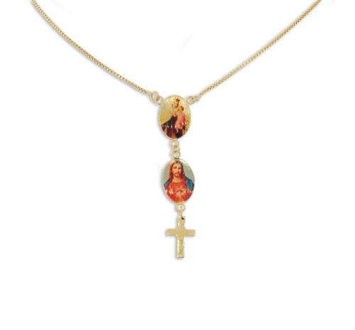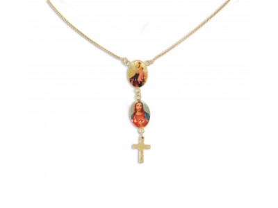 GF0028: 7 x 35 mm - Gargantilha em ouro amarelo 18k, escapulário “Zenilda” oval em ouro – FULL IMAGE (Nossa Senhora da Penha e Sagrado Coração de Jesus)