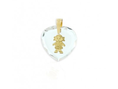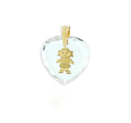 PF0098: 17 x 17 mm - Pingente em ouro amarelo 18k, com coração em cristal com menino ou menina Opção: ouro branco, ouro amarelo.