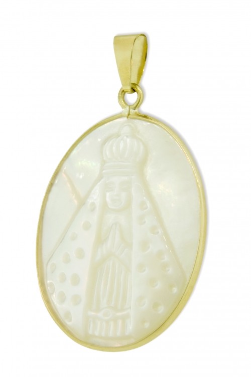 PF0160: 18 x 25 mm - Pingente em ouro amarelo 18k, com madre pérola oval com santo esculpido Opção: ouro branco, ouro amarelo.