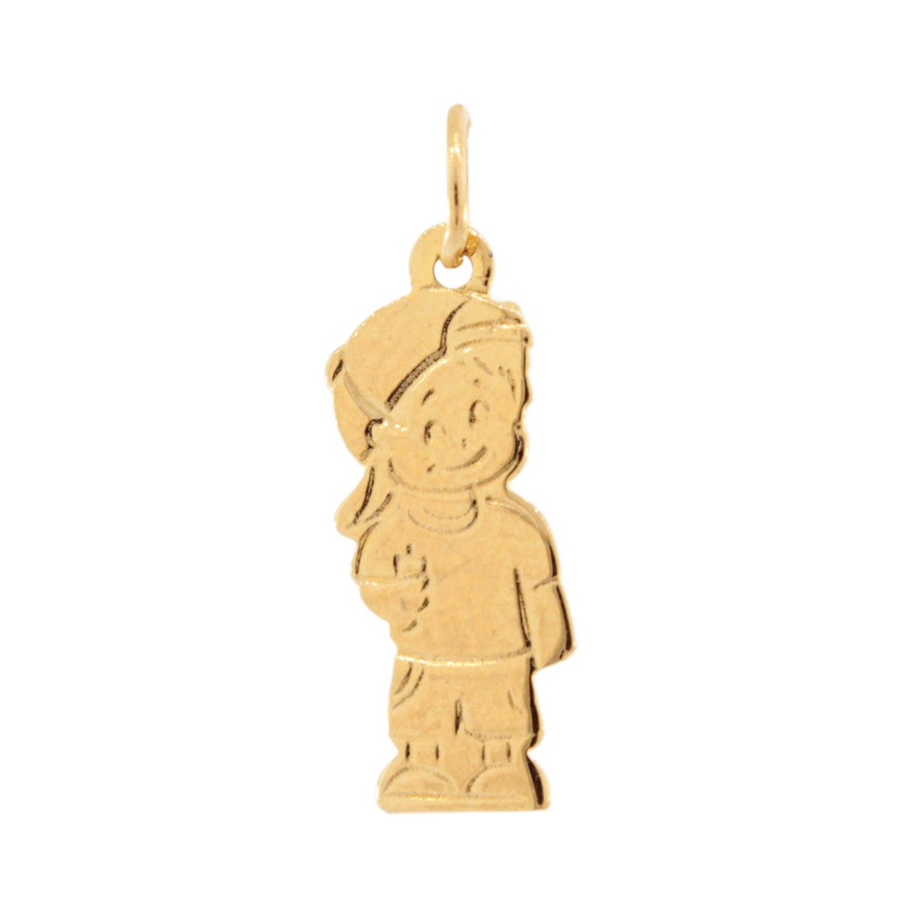 PF0291: 6 x 13 mm - Pingente em ouro amarelo 18k, com menino ou menina em ouro Opção: ouro branco, ouro amarelo.