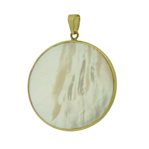 PF0245: 35 x 35 mm - Pingente em ouro amarelo 18k, com madre pérola redonda com contorno em ouro – FULL IMAGE