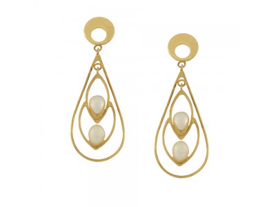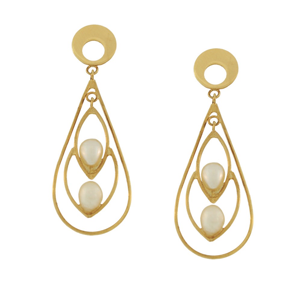 - Brinco em ouro amarelo 18k, com chapa redonda vazada, detalhes em ouro e pérola em gota pequena