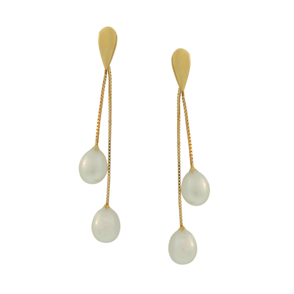- Brinco em ouro amarelo 18k, com gotinha em ouro, 2 venezianas e 2 pérolas pequena em gota