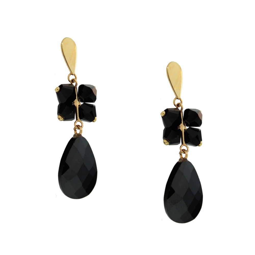- Brinco em ouro amarelo 18k, com chapa em ouro, pedra de cristal e gota de cristal
