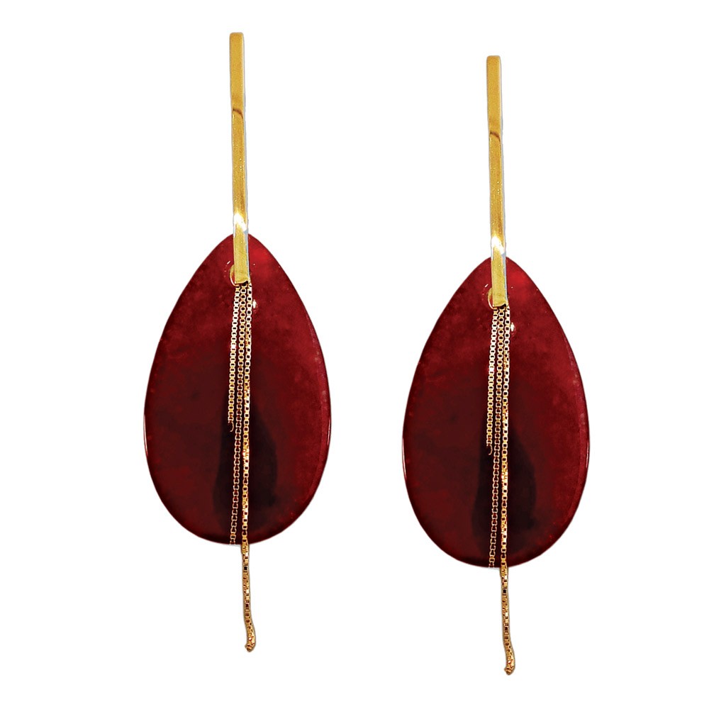 - Brinco em ouro amarelo 18k, com chapa em ouro, veneziana e pedra