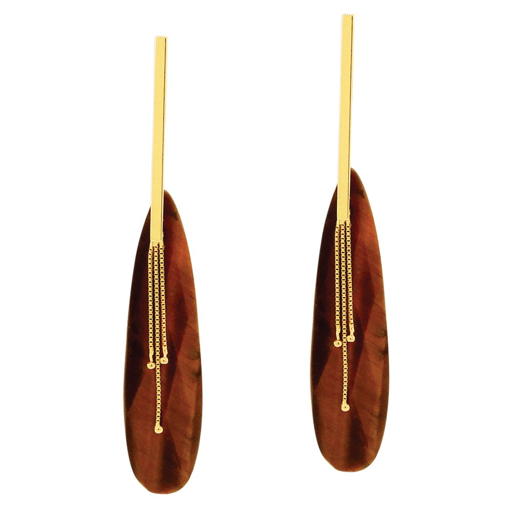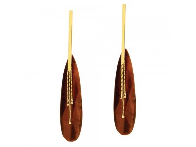 - Brinco em ouro amarelo 18k, com chapa em ouro, veneziana e pedra