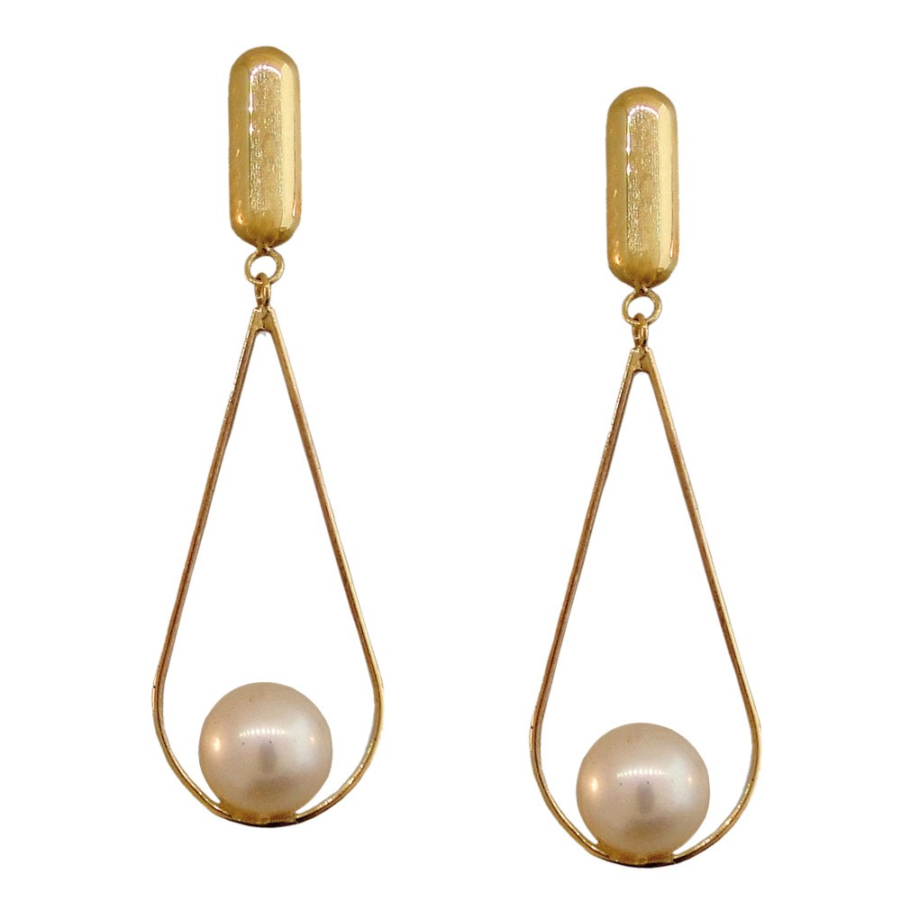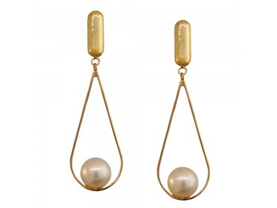 - Brinco em ouro amarelo 18k, com chapa e detalhes em ouro e perola