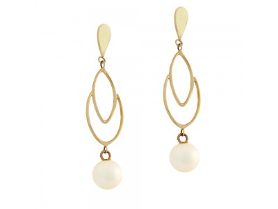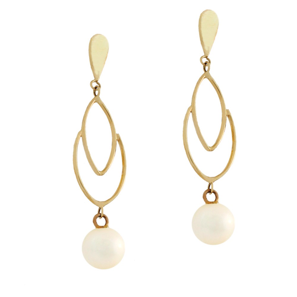 - Brinco em ouro amarelo 18k, com chapa e detalhes em ouro e perola no pirulito