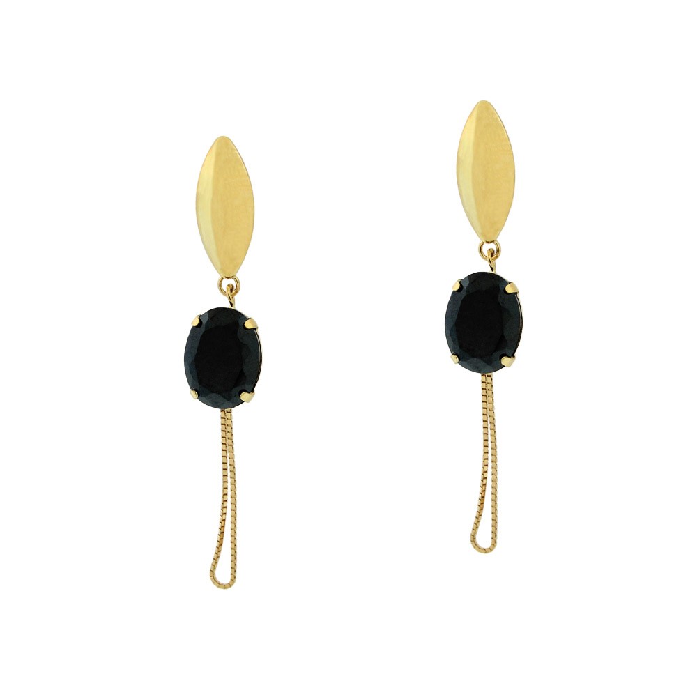 - Brinco em ouro amarelo 18k, com chapa em navete e chatão oval
