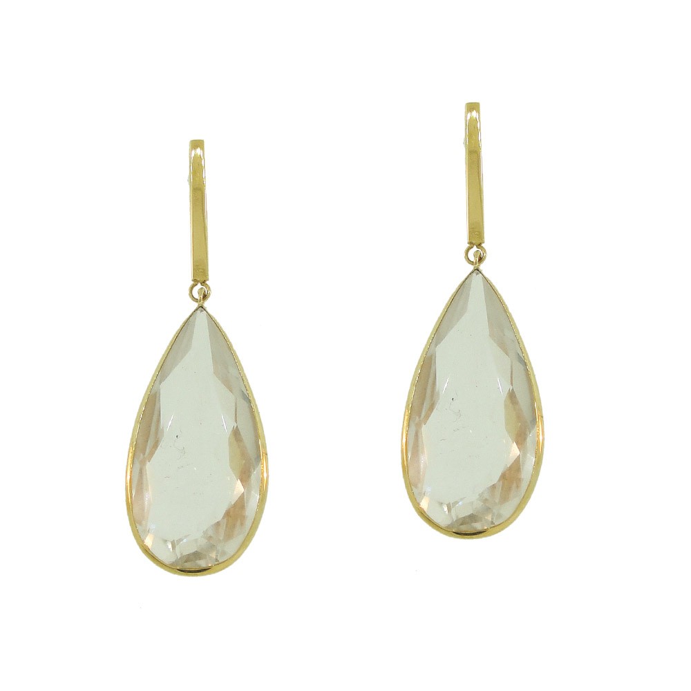 Brinco em ouro amarelo 18k, com detalhes em ouro e cristal