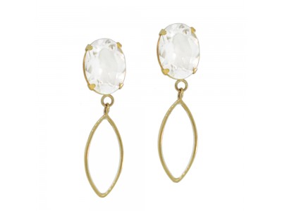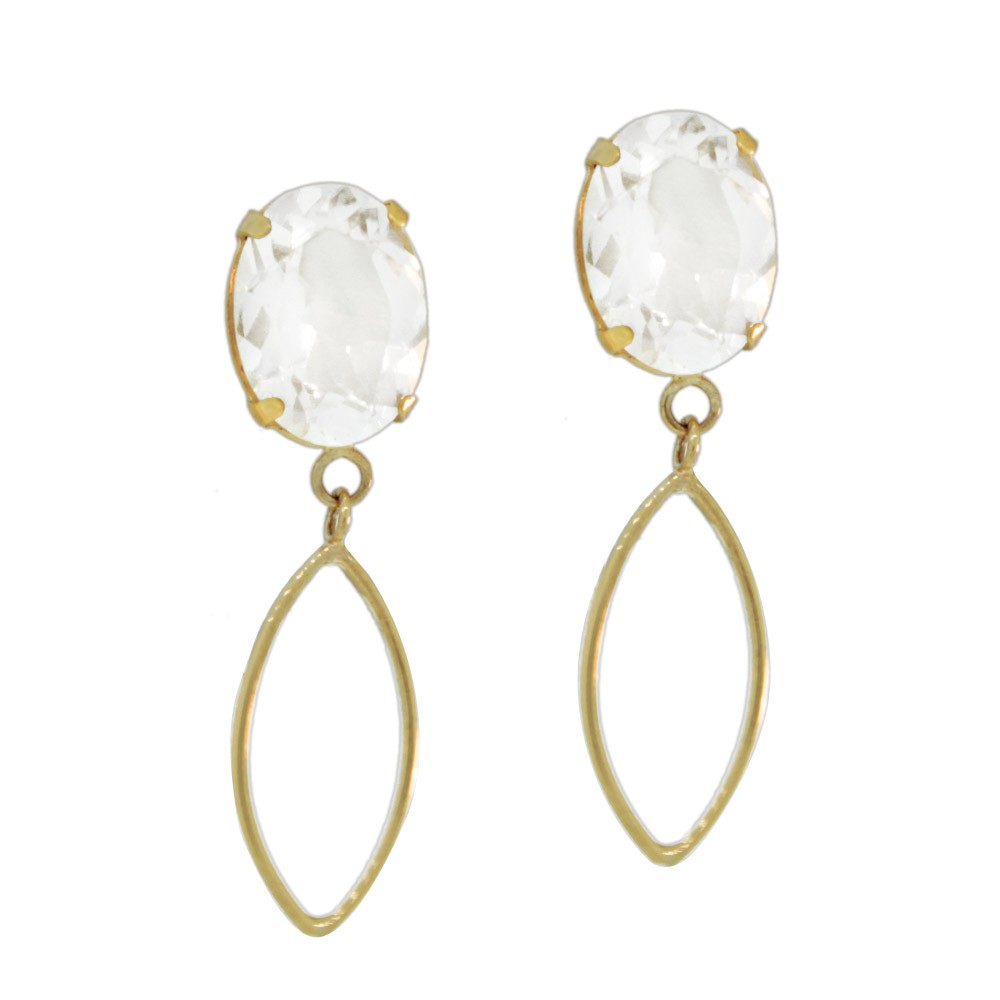 - Brinco em ouro amarelo 18k, com chatão oval e navete vazada