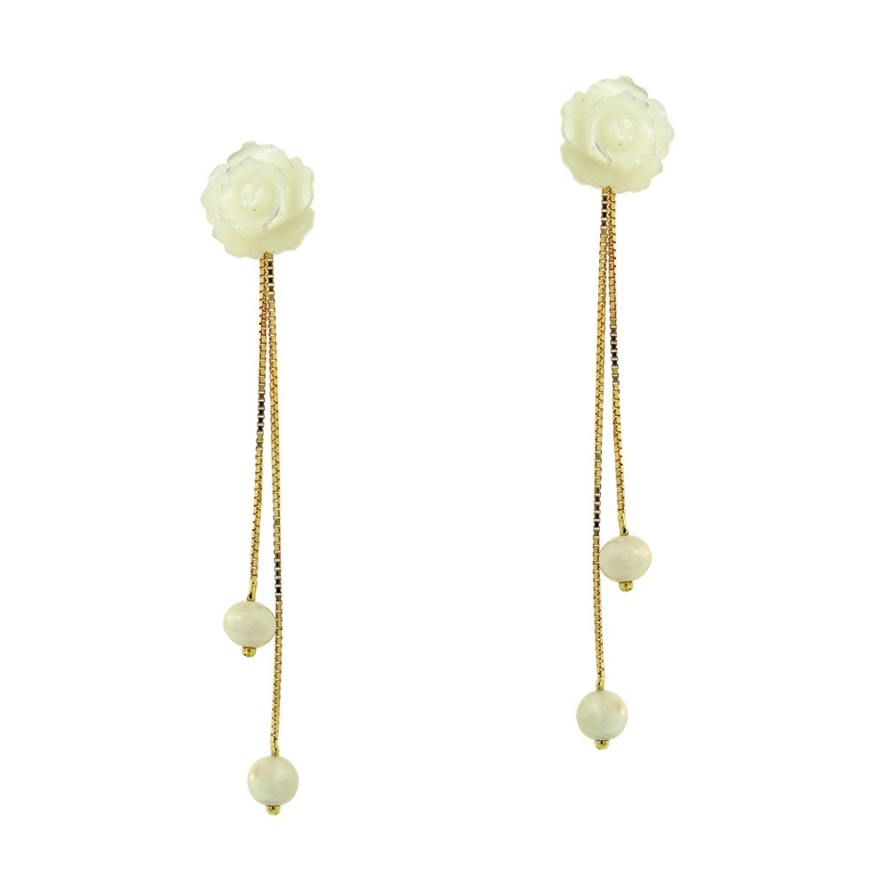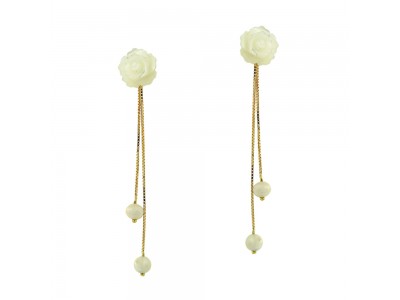 - Brinco em ouro amarelo 18k, com flor de madre perola, veneziana e perola