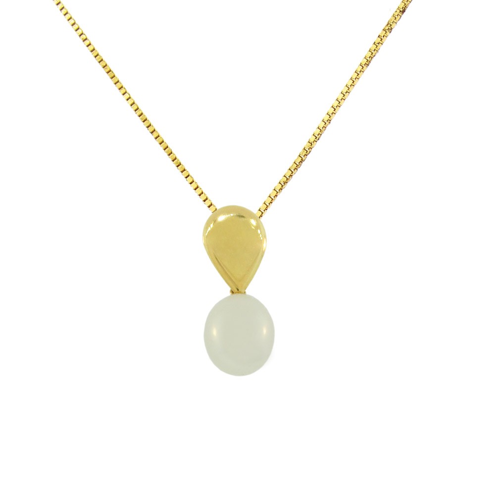 - Pingente em ouro amarelo 18k, com detalhes em ouro e perola em gota no pendulo