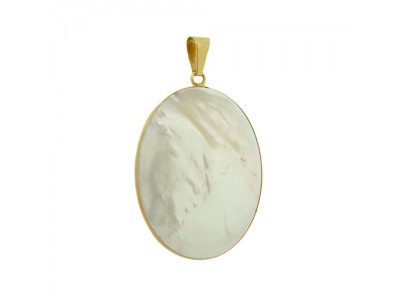 PF0233: 18 x 26 mm - Pingente em ouro amarelo 18k, com madre pérola oval com contorno em ouro – FULL IMAGE
